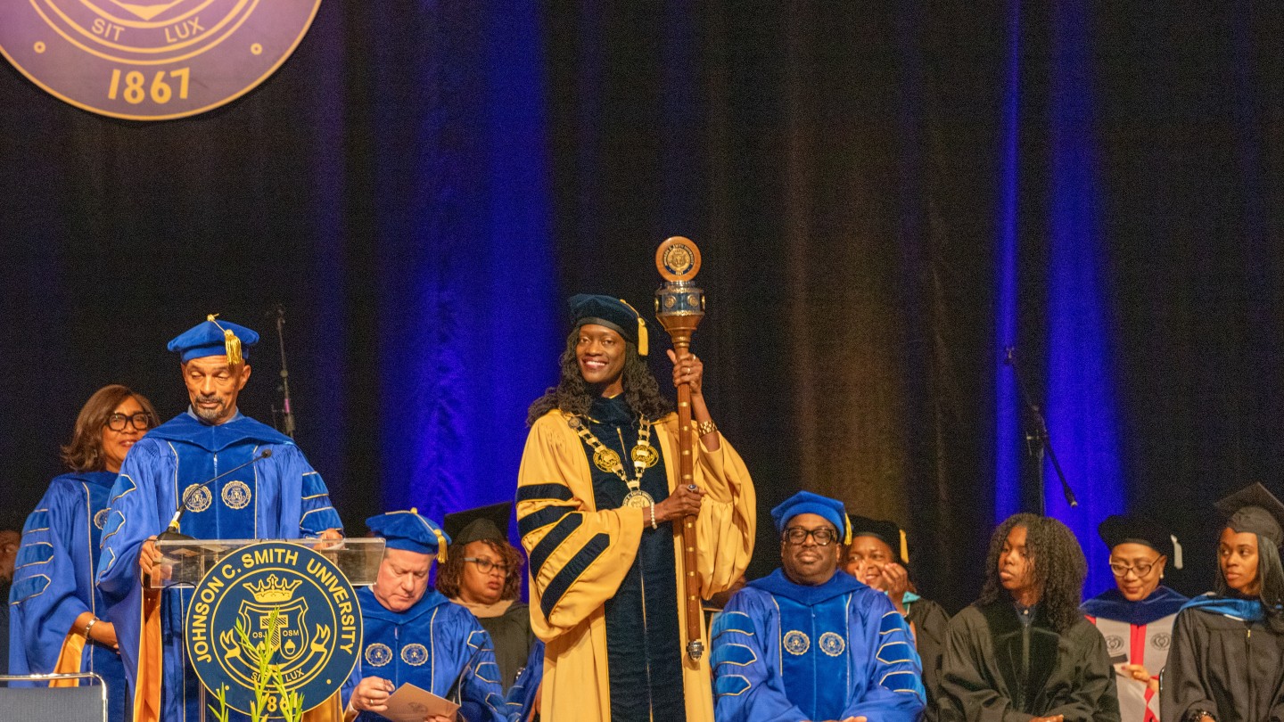Charlotte, N.C./April 5, 2024 – Johnson C. Smith University faculty, staff, students and special guests packed the Crown Ballroom at the Charlotte Convention Center on Friday to witness the official installation of Dr. Valerie Kinloch ’96, as the University’s 15th president.